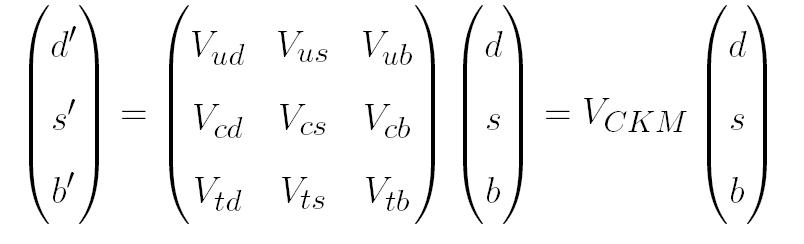 where Vij is the Cabibo-Kobayashi-Maskawa matrix, which connects the weak eigenstates and the mass eigenstates: